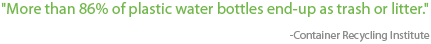 86% of 60,000,000 = 50,160,000 disposable bottles filling our landfills EVERY SINGLE DAY. It will be another 1,000 years before they even begin to decompose.